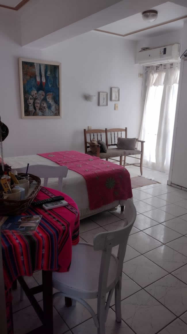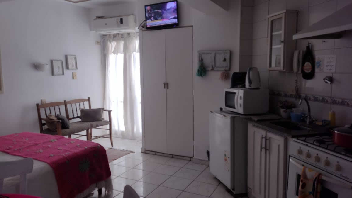 Monoambiente PEQUEÑO , IDEAL PARA HASTA 2 PERSONAS, CAMA MATRIMONIAL, divino, con balcón, totalmente equipado con todo lo que pudiera necesitar, Wifi, TV, AA, placard, 1 balcón con silla, cocina completa, vajilla completa, heladera bajomesada,pava eléctrica, tostadora, secador de pelo. En el baño encontrará jabón de tocador, el baño es completo con bañera. En la cocina hay detergente.