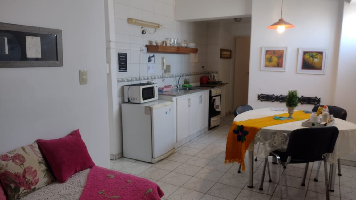 DEPARTAMENTO DE 1 DORMITORIO IDEAL PARA HASTA 3 PERSONAS, CAMA MATRIMONIAL,Ò INDIVIDUALES, divino, con 2 balcones,2 placares, , totalmente equipado con todo lo que pudiera necesitar, Wifi, 2TV, 2AA, 1 balcón con sillas y mesita, cocina completa, vajilla completa, heladera bajomesada,pava eléctrica, tostadora, secador de pelo. En el baño encontrará jabón de tocador, el baño es completo con bañera. En la cocina hay detergente.