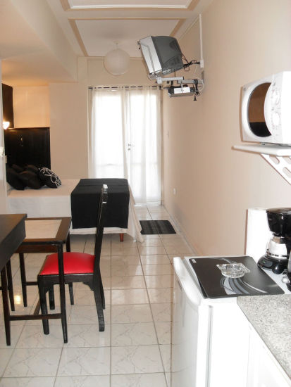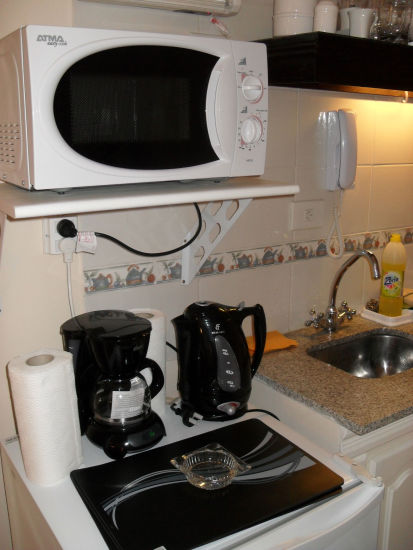 Monoambiente , IDEAL PARA HASTA 3 PERSONAS, CAMA MATRIMONIAL, Ò SINGLES - divino, con balcón, totalmente equipado con todo lo que pudiera necesitar, Wifi, TV, AA, placard, 1 balcón con sillas, cocina completa, vajilla completa, heladera bajomesada,pava eléctrica, tostadora, secador de pelo. En el baño encontrará jabón de tocador, el baño es completo con bañera. En la cocina hay detergente.